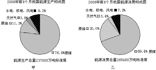 1、关于我国2008年前8个月能源生产与消费的叙述正确的是