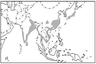2、综合题 读“亚洲水稻的主要分布地区”图,完成下列问题:(10分)