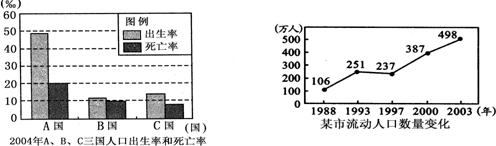 A.老龄人口比重增大,老年人口死亡率上升 B.人类医疗水平提高,老年人口死亡率下降 C.社会负担加重,老年人口死亡率上升 D.流动人口增加,老年人口死亡率下降 参考答案: 本题解析: 本题难度:简单 4、综合题 读“人口出生率与人均国民生产总值关系曲线”图,完成相关问题。(12分) 参考答案:(1)坦桑尼亚?中国?巴西?美国 本题解析:图中曲线表示世界平均状况,在曲线之上的国家表示在同类人均国民生产总值国家中,该国人口出生率较高,在曲线之下,则较低。依据不同国家的情况,不难回答问题。理解图中曲线表示世界平均状况以及世界上不同类型国家的基本国情是解题关健。 本题难度:简单 5、综合题 (16分)读下面人口增长模式及其转变示意图,完成下列问题。 参考答案:(1)自然增长率?人口自然增长率=出生率—死亡率? 本题解析:本题考查人口增长模式。 本题难度:一般 |