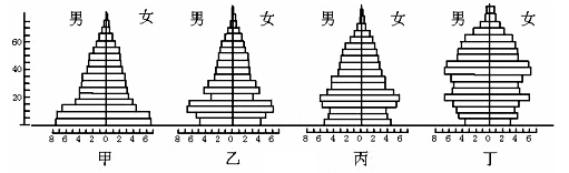 小题2:结合表格资料,我国第六次人口普查的人口年龄结构特征:少年儿童比重较低;青壮年人口比重高;老年人口比重较高,故丁图符合。