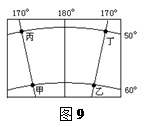 2、单选题  根据图9中甲、乙、丙、丁四地的经纬度位置,判断28—29题。