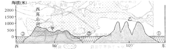 小题1:根据图中的纬度20°N和经度80°E,和图中提示的信息西高止山,判断,甲为印度的德干高原,甲地气候为热带季风气候,其成因为海陆热力性质差异和气压带带季风移动。所以本题选择C选项。