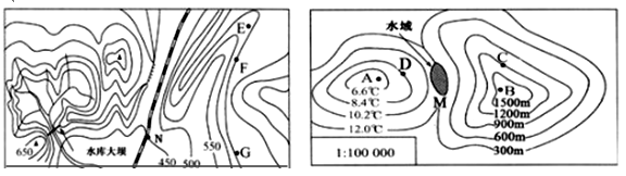 4、单选题  下图是某地附近两区域等值线分布图(比例尺相同),读图回答下列各题。