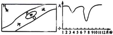 1.甲城与我国上海市的纬度位置大致相当,但两地气候特点不同,造成这种差异的主要因素是:2.20世纪70年代,在丙河上兴建了大坝,并形成了一个巨大的人工水库。大坝建成后,带来的影响不包括: