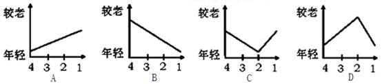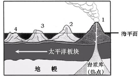 小题2:下列图示最能代表从链状火山岛屿(2、3、4)到夏威夷群岛主岛(1)年龄分布情形的是
