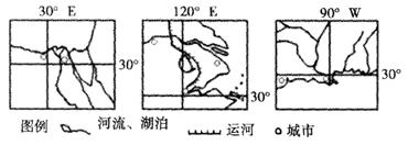 A.轻重工业都发达 B.工业都集中分布在东欧部分 C.工业中以重工业、核工业、航空航天工业为突出 D.四个主要工业区间有高速公路相联,交通便利 3、单选题  如图是北纬30°附近三个三角洲位置示意图,据此完成问题。  |