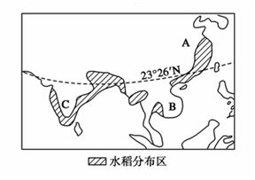(1)从图中水稻分布可以判断,A为东亚、B为东南亚、C为南亚。