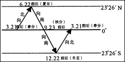 (1)3月21日——6月22日:由赤道向北回归线移动;