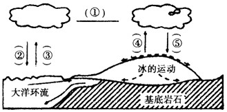 4、单选题 最高点冰穹地区胜利建成。下图为南极地区的自然物质运动示意图,读图回答下列说法正确体现南极地区水循环环节的是