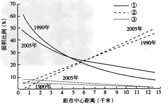 1.曲线①②③代表的土地利用类型符合一般城市三类用地时空变化特点的是