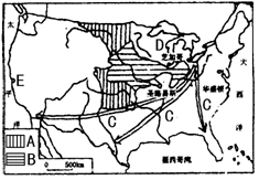 (4)E表示美国西部的硅谷,为世界电子工业中心,属于技术指向型工业,故主要影响因素是科技。