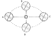 (4)在A、B、C、D四点中地球公转速度较快的是____________点,每年7月初