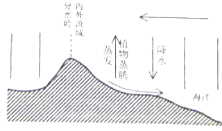 (4)海洋上水汽大量蒸发,通过海陆风,吹向陆地,到达大陆上空后,达到一定程度,形成降雨,雨水降落到地表,回流到河流,最后流入海洋。陆地上湖泊水汽蒸发和植物蒸腾作用,当水汽达到一定程度,也会形成降水。