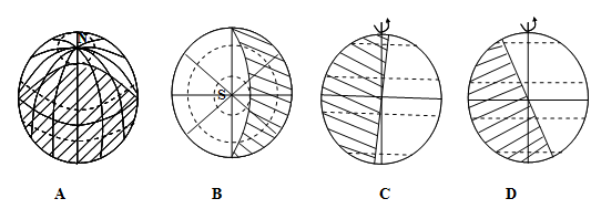 小题2:下图所列太阳光照图中,与当日最吻合的是