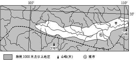 1.甲河干流的南、北支流比较,南岸支流2.图中虚线不可能是