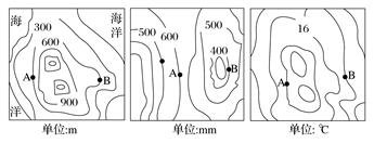 【小题2】北纬52°某地总体位于盛行西风带内,B点的位置位于山顶的东部,位于盛行西风的背风坡,具有明显的焚风效应。答案选B。