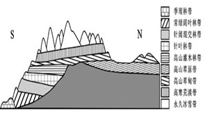 3、单选题 该图是珠穆朗玛峰地区南、北坡垂直自然带谱示意图。读图回答15~16题。
