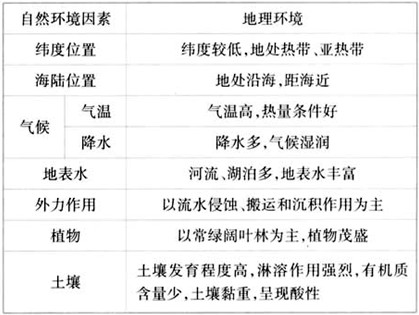 3、填空题 根据所学知识,总结我国东南沿海地区地理环境的整体性,并完成下表。