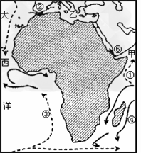 5、单选题 读非洲附近洋流分布示意图,回答1 -2题