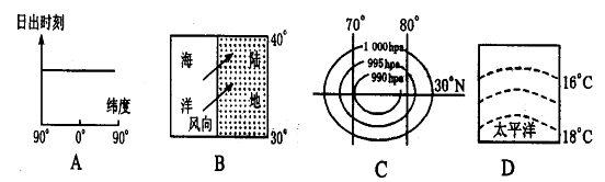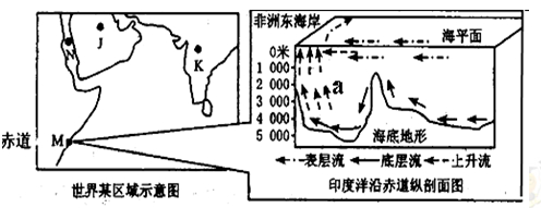 4、单选题 读世界某区域示意图及印度洋沿赤道纵剖面图,回答下列哪个选项中能反映a处上升流最强烈时所代表区的季节(? )?
