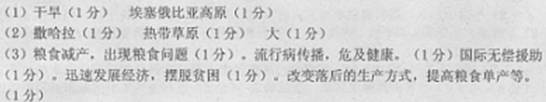 (3)指出非洲自然灾害频发会出现的问题及主要解决办法。(5分)