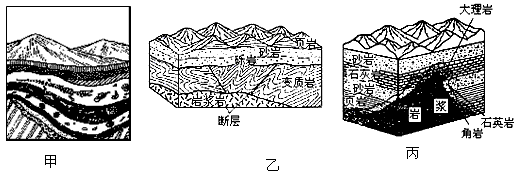 1、乙、丙两图中各岩石,按成因分类都属于变质岩的一组是