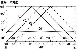 小题2:当“神九”飞船遨游太空时,全球不同纬度正午太阳高度最接近下图中的