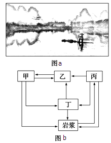【小题1】广西的桂林山水是典型的喀斯特地貌。主要的岩石为石灰岩,为沉积岩。在地壳物质循环示意图中,甲为沉积岩,乙为沉积物,丙为岩浆岩,丁为变质岩。答案选A。