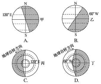 5、单选题 2017年的6月7日,同学们都将信心十足地走进高考考场,为社会、父母和老师交上满意的答卷6月7日第一场考试顺利结束时,已近12时,此时的光照图是( )