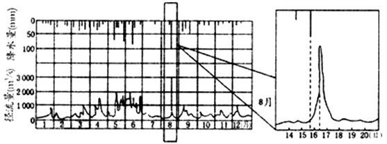 2、图中反映了该河流8月中旬的一次降水量与径流量的变化过程,最大降水量与最大径流量之间有一个时间差,近年观测发现这个时间差逐年变大,这可能是由于: