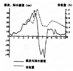 小题1:直接读图,P点蒸发量与降水量的差值最大,土壤盐度高,故A项正确。