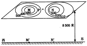 4、单选题 下图为北半球某平原8500米高空水平气压分布示意图,读图完成1—2题。