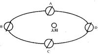 (1)在图中用箭头标出地球绕日公转的方向和自转方向。
