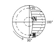 2、单选题 下图中虚线MHN表示晨昏线,阴影部分为1月6日,非阴影部分与阴影部分的日期不同,据此,回答1—3题。