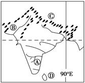 1.B处的主要宗教是2.A处附近的城市为印度重要的3.关于印度的叙述,正确的是