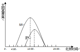 单选题 读“6月某日,M、P两地的太阳高度角示意图”,完成下列各题。