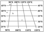1.由a、b、c、d的经纬网可知它们分别是塔里木盆地、柴达木盆地、四川盆地和准噶尔盆地;而由①②③④的盆底海拔、边缘南北的海拔可知:④是柴达木盆地,其盆底海拔最高;③为塔里木盆地,其南侧海拔高;②为四川盆地;①是准噶尔盆地。