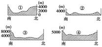 1.在下面①②③④四幅地形剖面图中与上图四大盆地分布位置对应一致的是