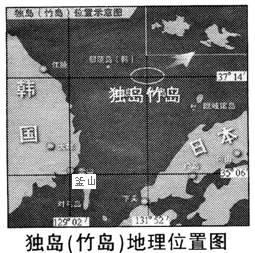 单选题 2006年4月25日韩国总统卢武铉在总统府青瓦台发表的韩日关系电视讲话中称,韩国将不惜在独岛问题上付出任何代价或牺牲,绝不会作出任何让步或妥协。结合独岛(竹岛)地理位置图,回答完 成以下各题。