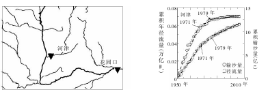 1.由图可知,河津水文站1950年—2010年2.导致1950年—2010年河津水文站径流量和输沙量变化的原因可能是