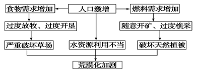 点评:本题难度较小考查了荒漠化问题产生的原因荒漠化产生的原因可从自然因素和人为因素两方面分析另外本题还可考查荒漠化问题的治理措施。
