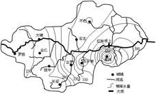 2.根据图示的等 降水量线的分布判断,该地区的降水量一般在200---500mm,即位于半干旱和半湿润的过渡区域,故判断该区域位于种植业和畜牧业的过渡地带。