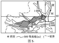 单选题 图5中阴影地区以干旱严重闻名,像一条带子缠绕在渭河北部,被称为“旱腰带”。这里人口密集且贫困人口多,是重点扶贫开发区。读图回答问题。