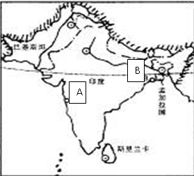 2.A为孟买,为印度最大的港口,附近生产棉花,故为棉纺织工业城市;B为加尔各答为印度最大的城市,附近盛产黄麻,故为麻纺织工业城市。