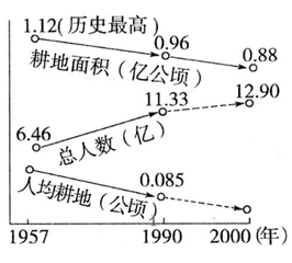 3.从图中看出我国人均耕地逐年下降,说明我国人口增长速度超过了耕地增长速度。