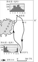 单选题 该图为东非高原基塔莱和多多马的降水资料及两地之间游牧路线示意图。读图,回答问题。