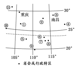 单选题 珠江三角洲是我国著名的经济发达地区,为了进一步加快其经济的引领作用,带动周边经济的发展,又划分了一 个新的区域——泛珠江三角洲区域(即粤、桂、闽、赣、湘、滇、贵、川、琼、香港、澳门),该图是该区域的局部地区图,据此判断以下各题。