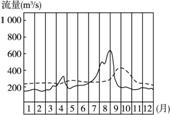 (2)建坝前河流流量曲线是虚线还是实线?据此判断此河分布在我国的什么地区?