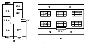 【小题1】依题意,甲图②栋10 层只要正午太阳高度低于45 度,就不能直接获得太阳照射,根据 H=90