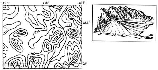(1)据图中等高线特点判断图示地区的地形类型,并说明判断理由。(2分)